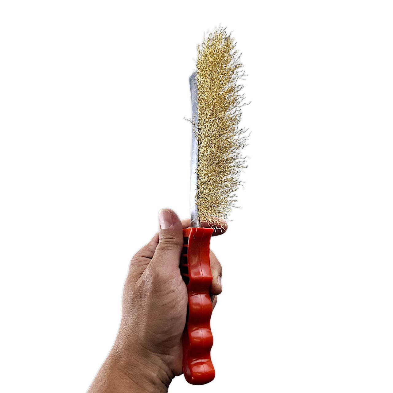 Щетка металлическая ручная 250 мм, пластиковая рукоятка, красная, мягкая