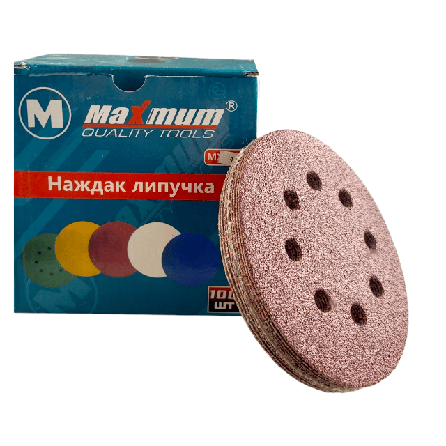 Шлифовальный круг на липучке 125 мм P 100, с отверстиями, "MAXIMUM" (кратно 100 шт)