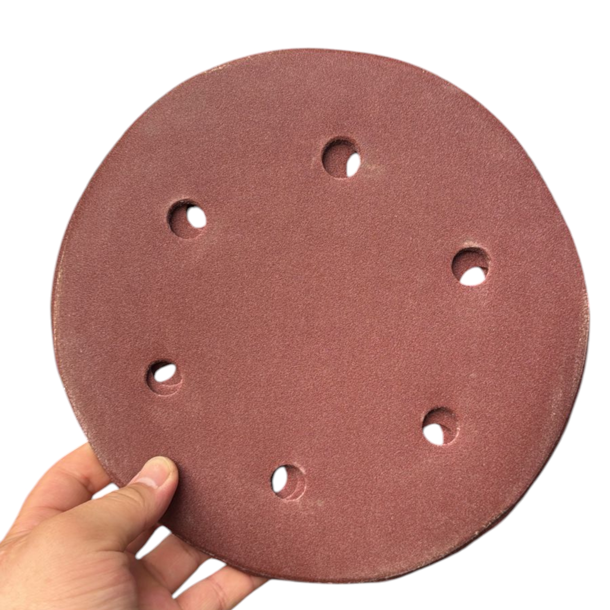 Шлифлист 225 мм на ворсовой основе с отверстиями применяется как расходный материал совместно со специальной опорной тарелкой с липким слоем.